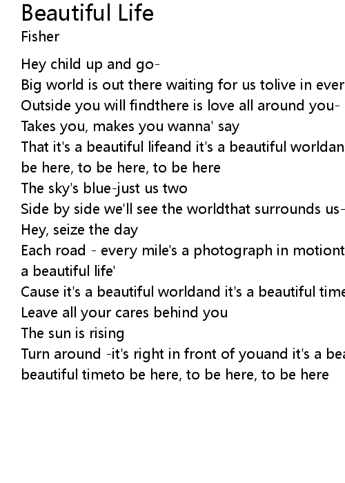 That it's a beautiful lifeand it's a beautiful worldand it's a beautiful timeto be here, to be here, to be here |