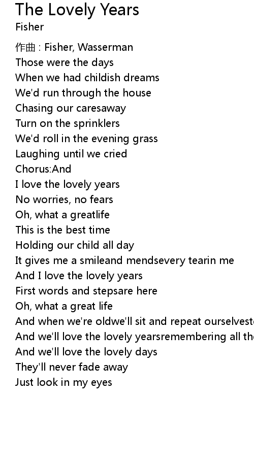 | And we'll love the lovely yearsremembering all the yearsof such a great life | |