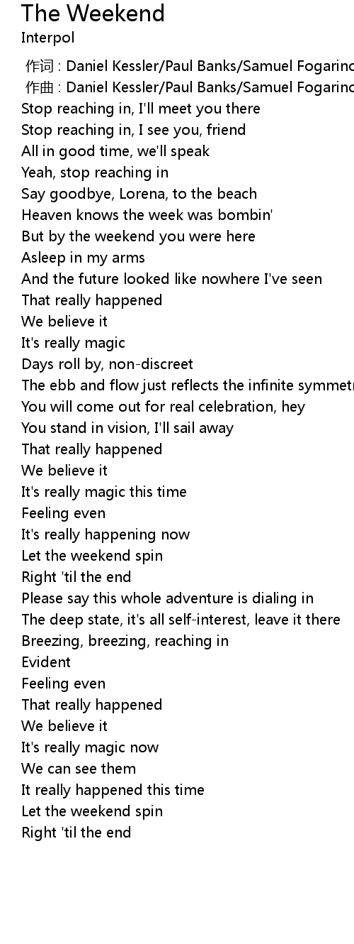 | [00:00.000] | 作词 : Daniel Kessler/Paul Banks/Samuel Fogarino |