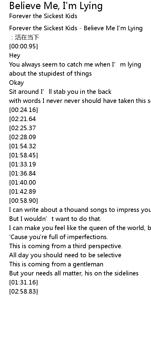 | [03:00.91] | Forever the Sickest Kids Believe Me I' m Lying |
