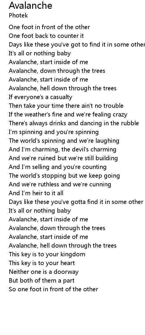 | Avalanche, start inside of me | |