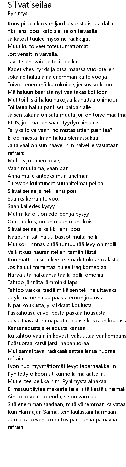 | Jokaine haluu aina enemmän ku toivoo ja | |