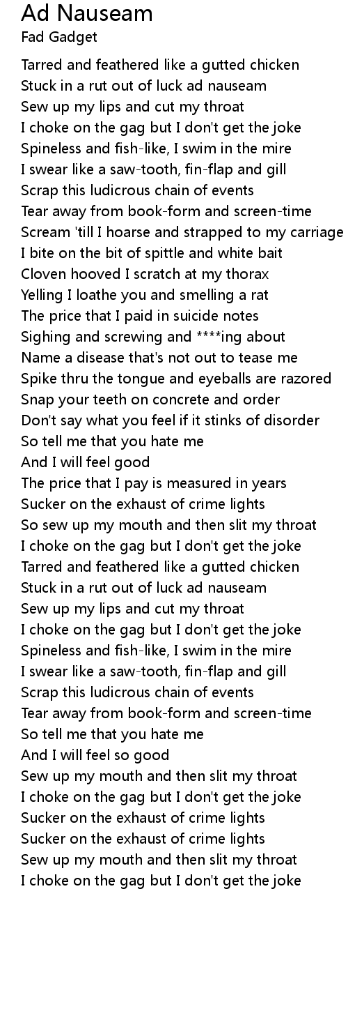 Stuck in a rut out of luck ad nauseam |