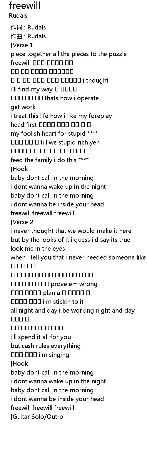 | [01:50.183] | baby dont call in the morning |