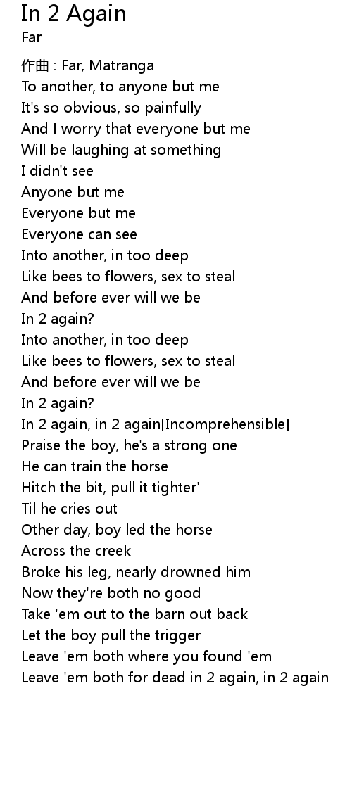 | In 2 again, in 2 again Incomprehensible | |