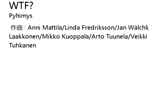 | [00:00.000] | 作曲 : Anni Mattila/Linda Fredriksson/Jan Wälchli/Jooel Laakkonen/Mikko Kuoppala/Arto Tuunela/Veikki Virkajärvi/Eero Tikkanen/Heikki Tuhkanen |