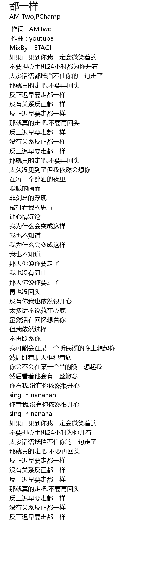 | [00:44.342] | méi yǒu guān xi fǎn zhèng dōu yí yàng |