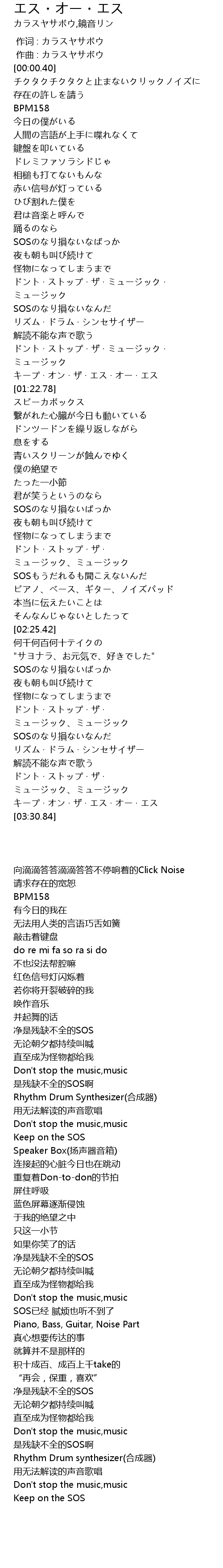 | [01:20.04] | キープ · オン · ザ · エス · オー · エス |