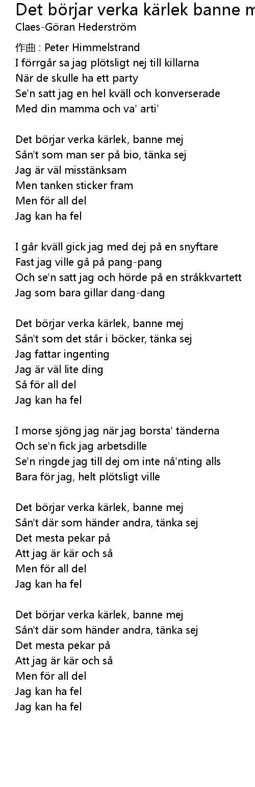 | Song | Det börjar verka kärlek banne mig |