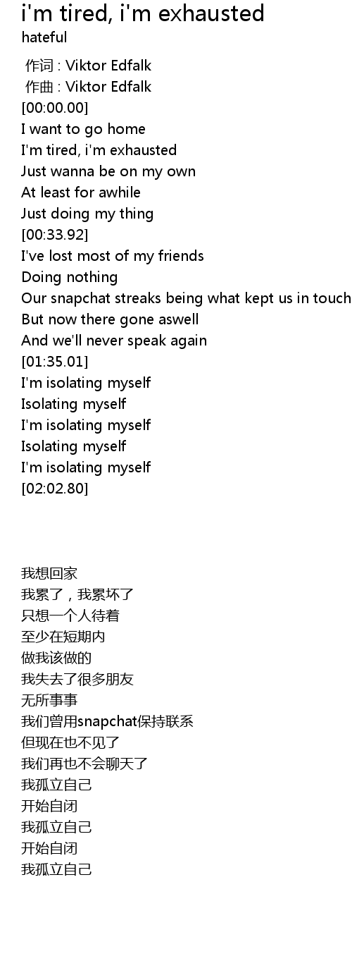 | [00:00.000] | 作词 : Viktor Edfalk |