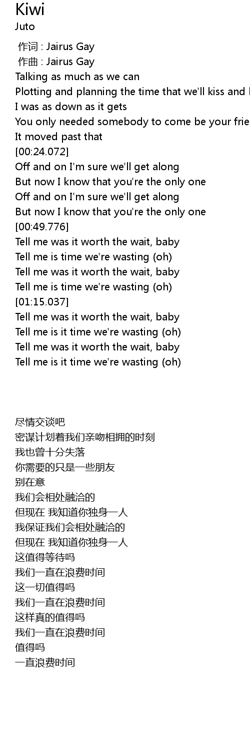 | [00:56.464] | Tell me is time we're wasting (oh) |