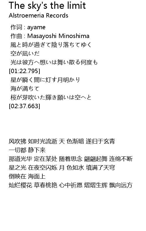 | [00:00.000] | 作词 : ayame |