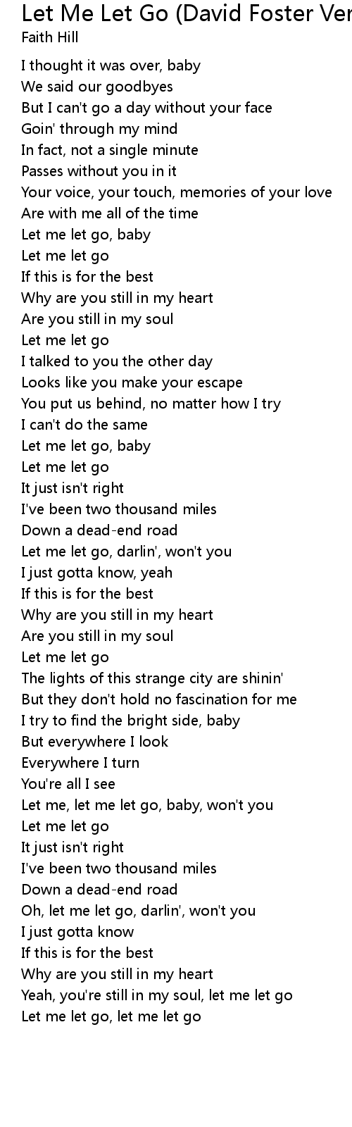 Let Me Let Go (David Foster Version) Lyrics