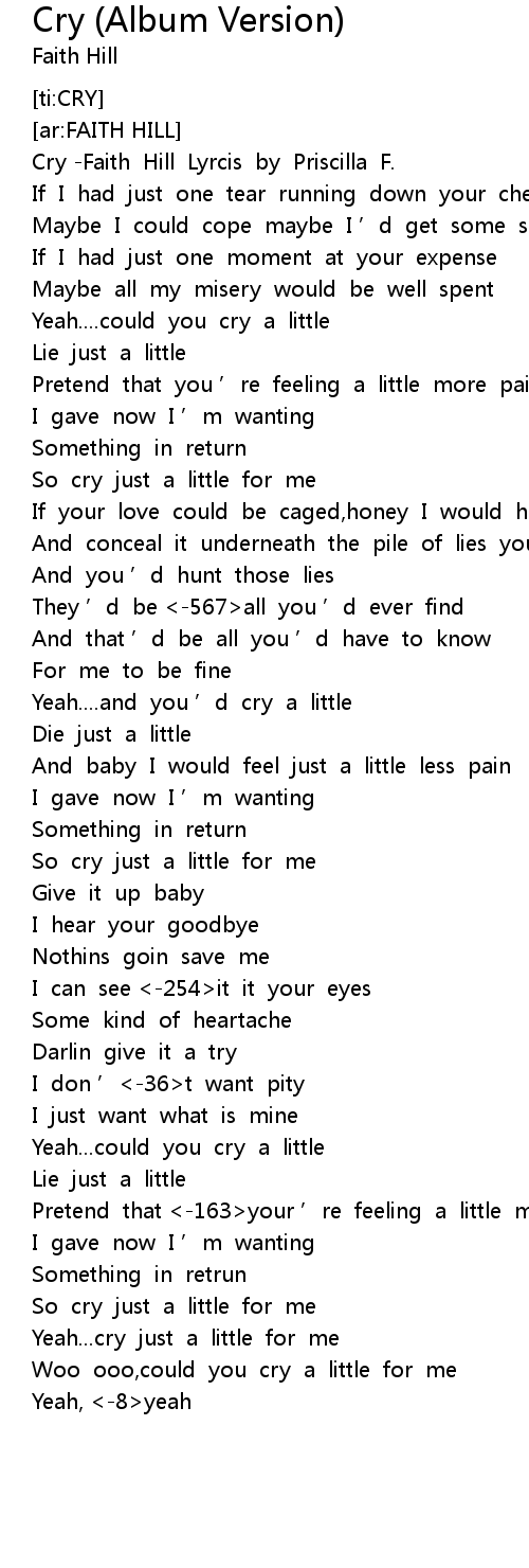 | [00:01.65] | Cry -Faith Hill Lyrcis by Priscilla F. |