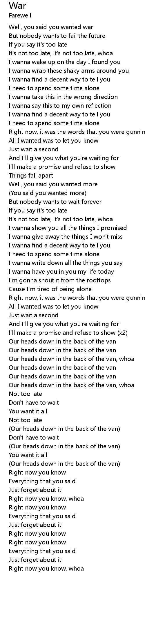 Well, you said you wanted war |