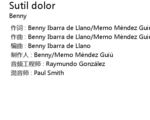 | [00:00.000] | 制作人 : Benny/Memo Méndez Guiú |