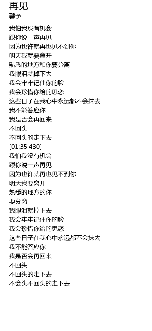 | [00:23.980] | gen ni shuo yi sheng zai jian |
