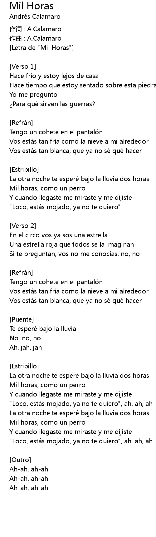 | "Loco, estás mojado, ya no te quiero", ah, ah, ah | |