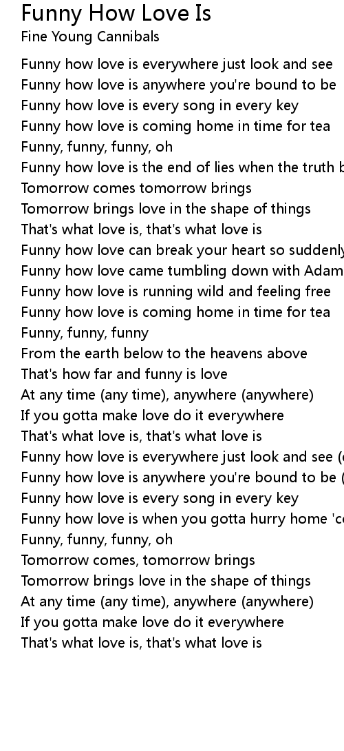 Funny how love is when you gotta hurry home 'cos you're late for tea |