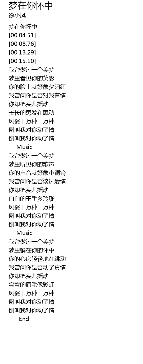 | [00:02.57] | 梦在你怀中 |