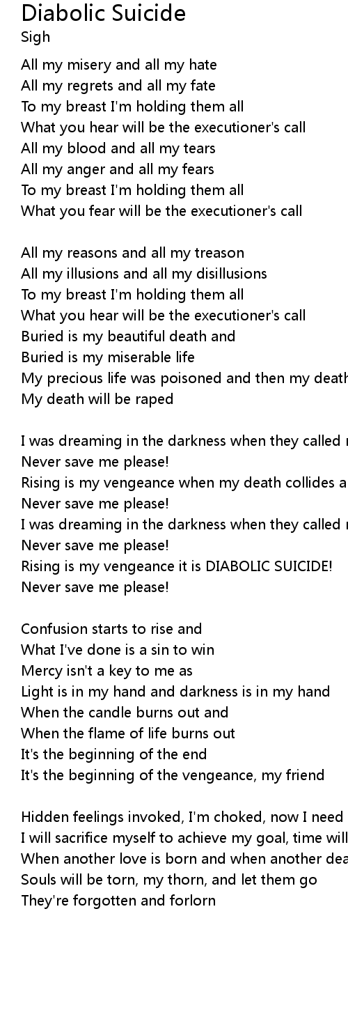 Rising is my vengeance it is DIABOLIC SUICIDE! |