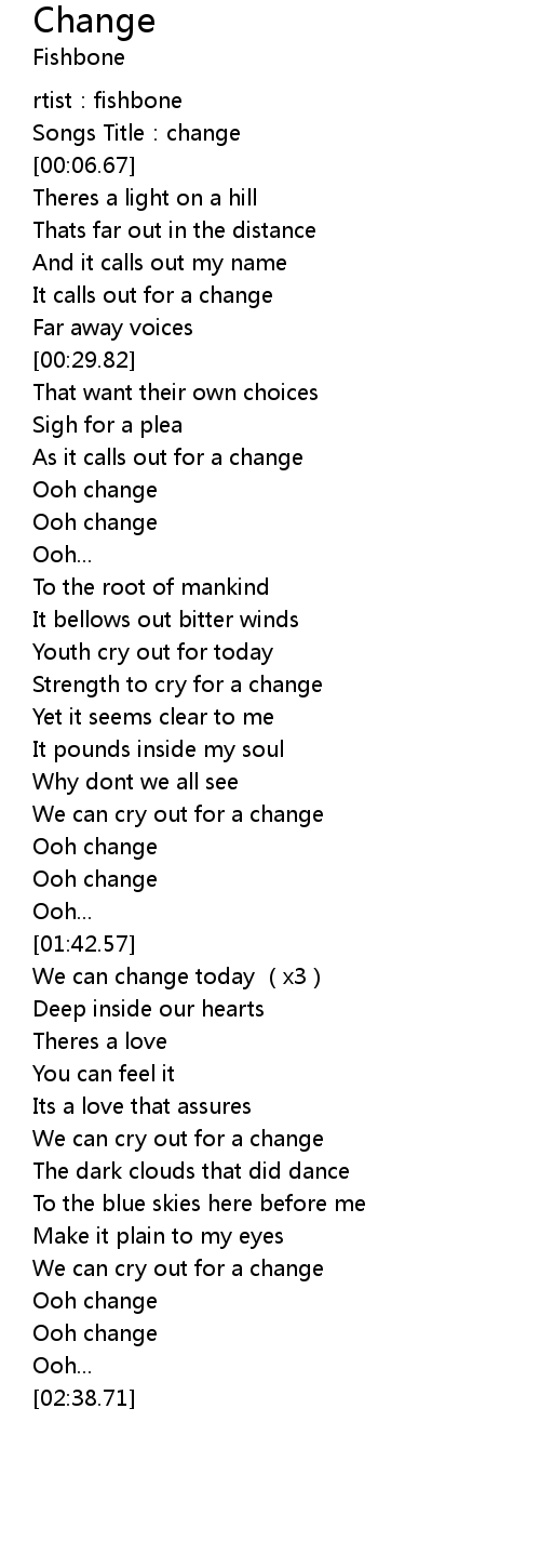 | [00:37.20] | As it calls out for a change |