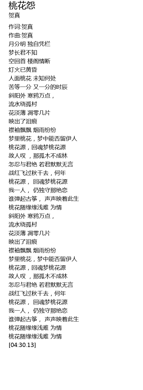 | [04:21.32] | 桃花随缘缘浅难 为情 |