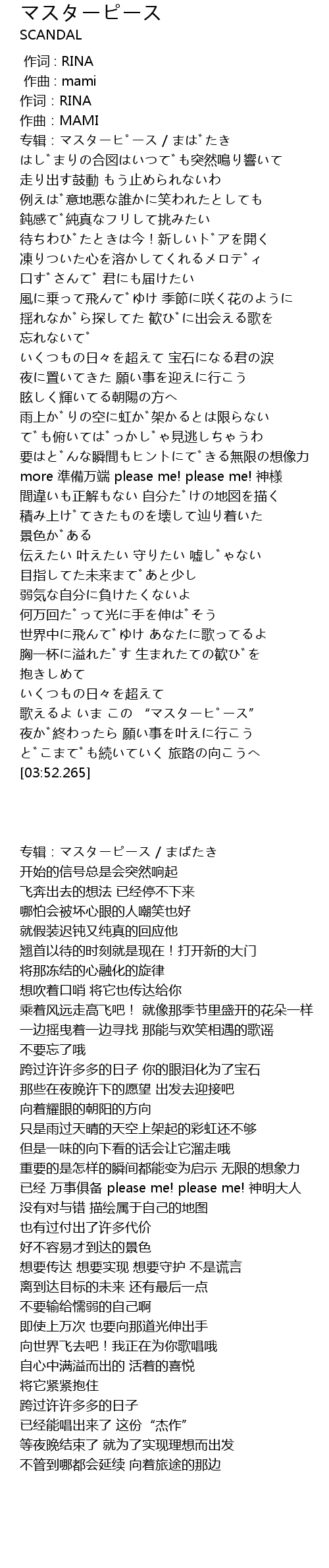 | [03:33.827] | 歌えるよ いま この “マスターピース” |