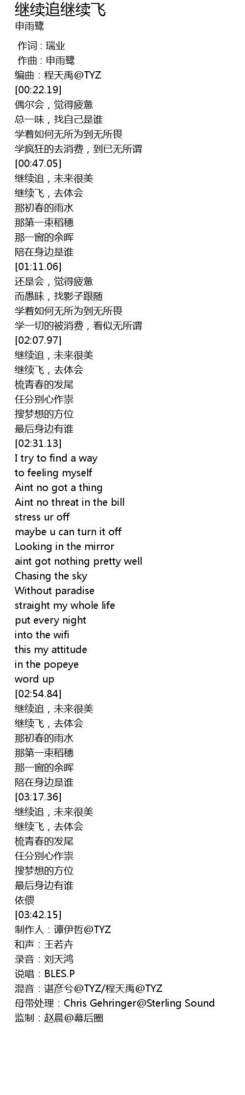 | [02:54.94] | ji xu zhui, wei lai hen mei |