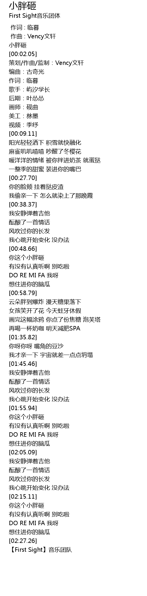| [02:27.40] | First Sight yīn yuè tuán duì |