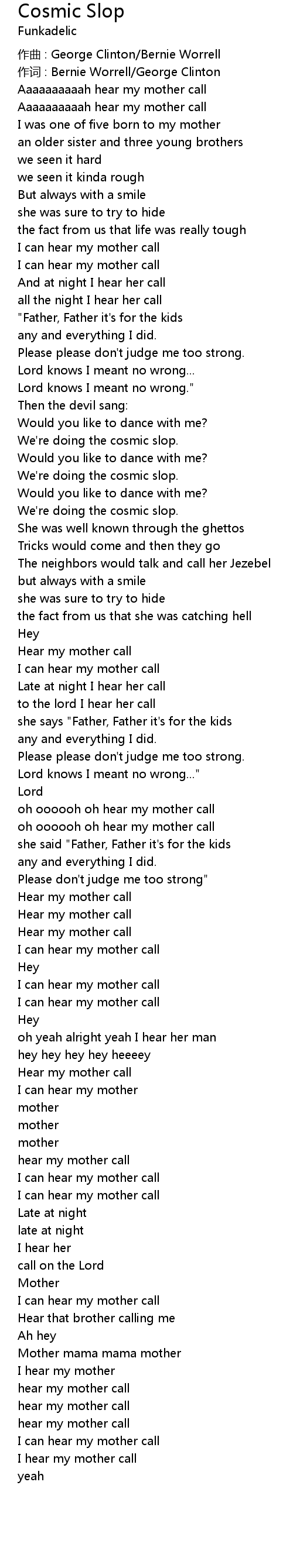 | 作词 : Bernie Worrell/George Clinton | |