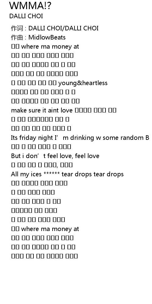 | [00:00.000] | 作词 : DALLI CHOI/DALLI CHOI |