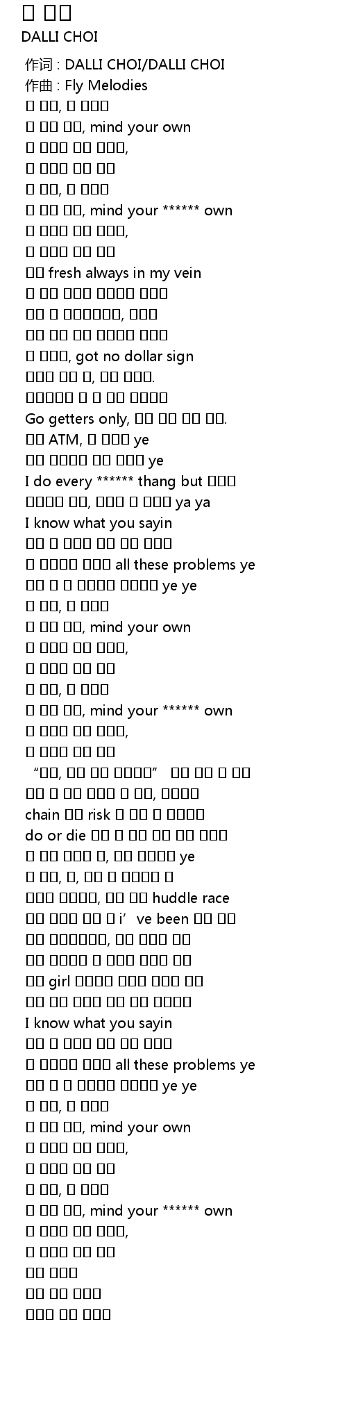 | [01:18.608] | I do every ****** thang but 아랑곳 |