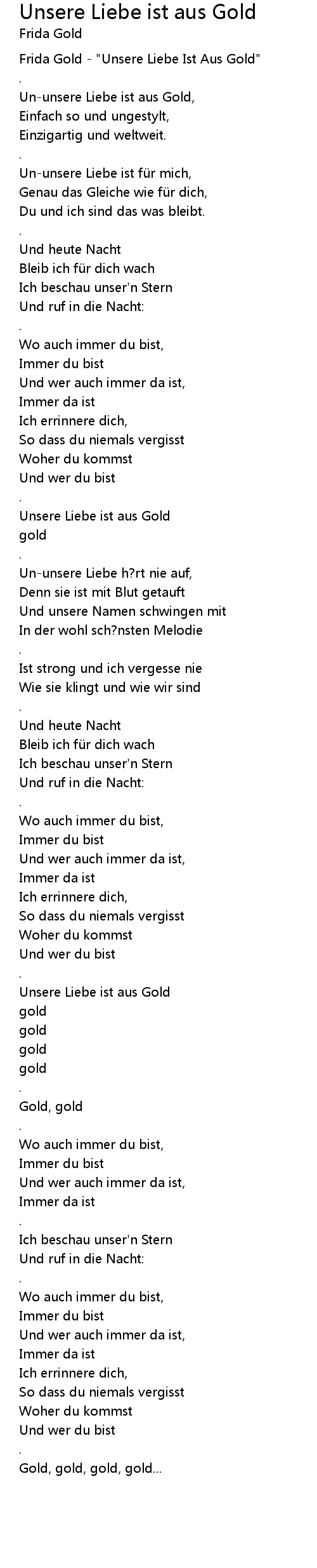 | [00:00.31] | Frida Gold - "Unsere Liebe Ist Aus Gold" |