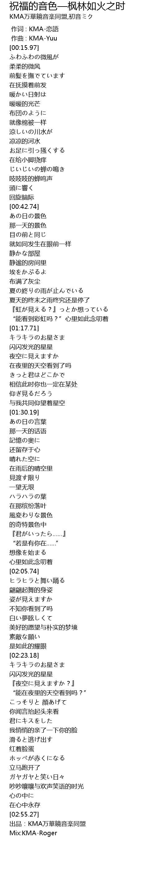 | [03:04.30] | 出品:KMA万華鏡音楽同盟 |