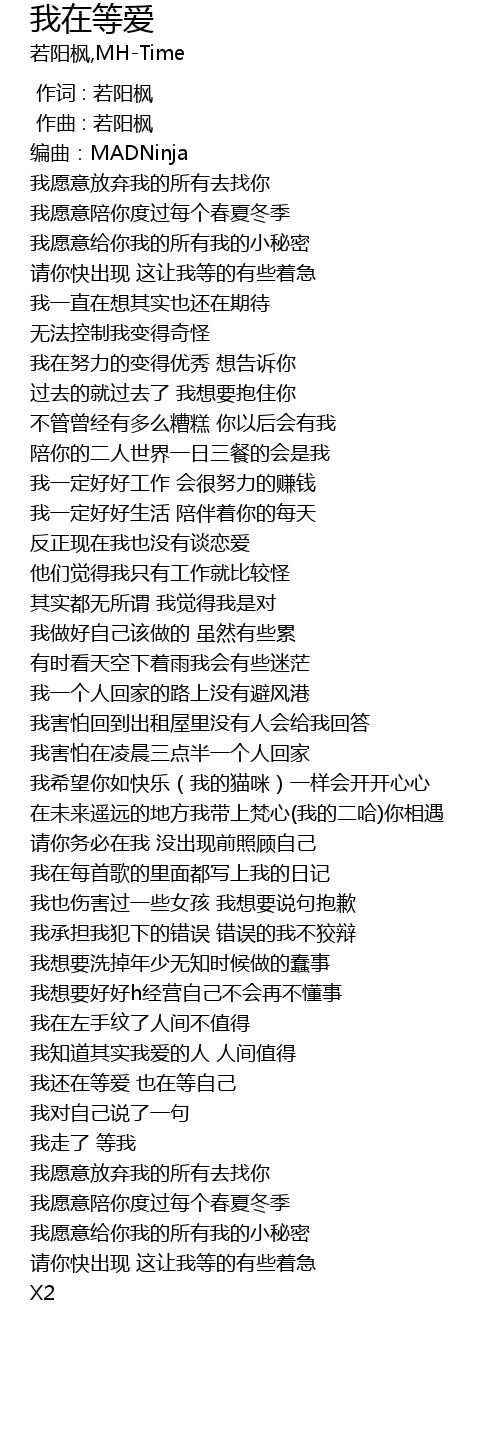 | [01:40.291] | 我还在等爱 也在等自己 |