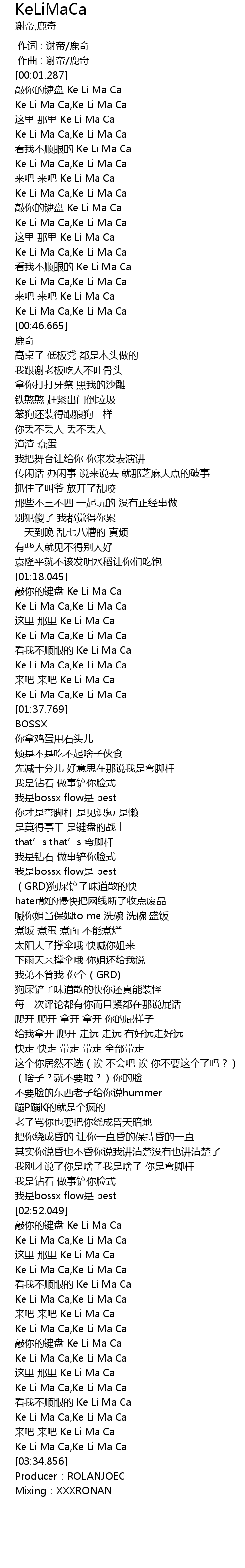 | [03:01.428] | Ke Li Ma Ca,Ke Li Ma Ca |
