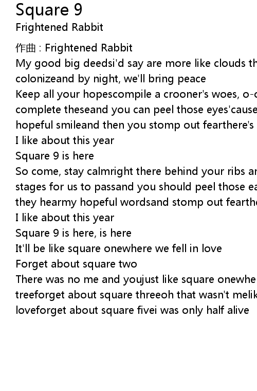 | Keep all your hopescompile a crooner' s woes, ooh, work out how to, how to complete theseand you can peel those eyes' cause it' s important that they seemy hopeful smileand then you stomp out fearthere' s something | |