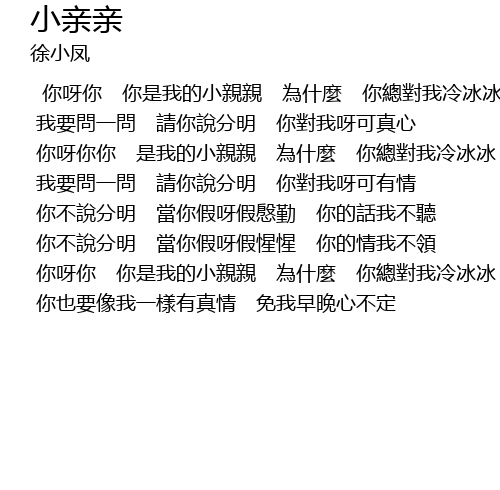 | 你呀你你 是我的小親親 為什麼 你總對我冷冰冰 | |