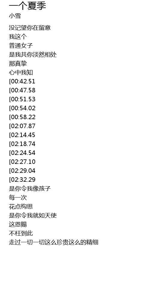 | [03:15.48][02:29.04][01:21.76] | 一个夏季 |