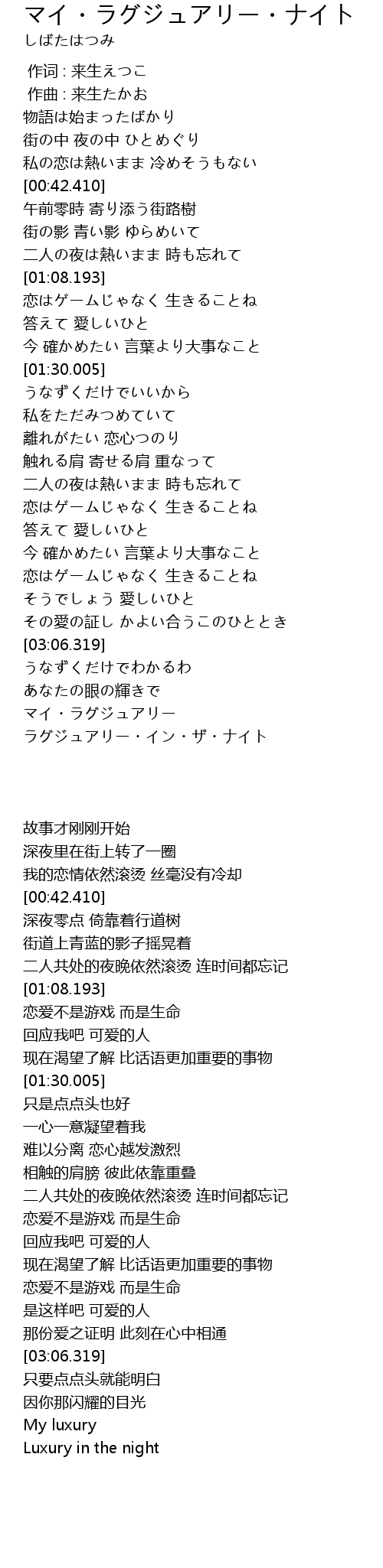 | [03:27.217] | ラグジュアリー・イン・ザ・ナイト |