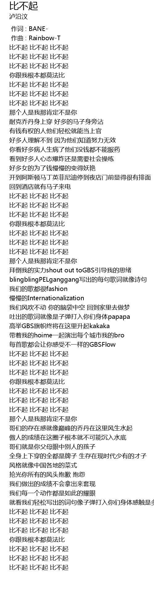 | [00:58.868] | bǐ bù qǐ bǐ bù qǐ bǐ bù qǐ |