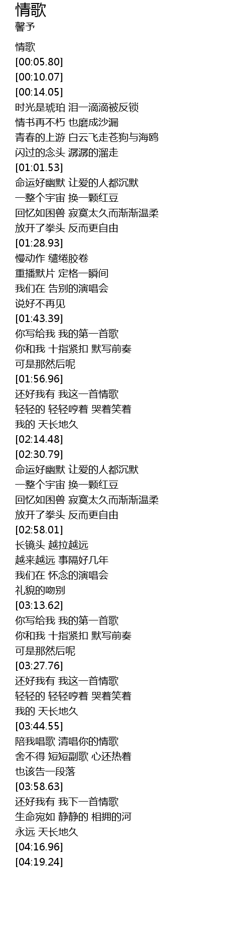 | [01:57.33] | 还好我有 我这一首情歌 |