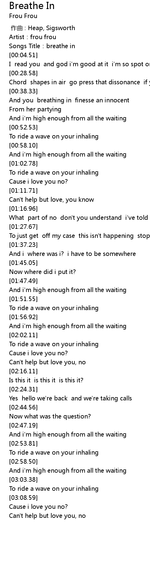 | [00:02.32] | Songs Title: breathe in |