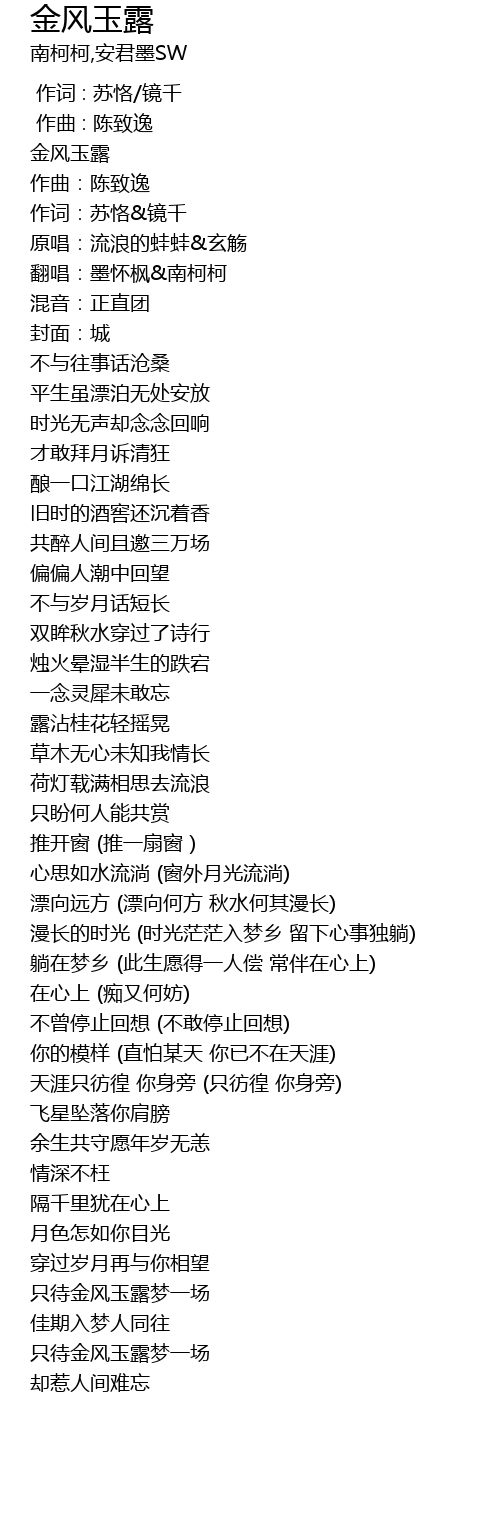 | [00:12.560] | 翻唱:墨怀枫&南柯柯 |