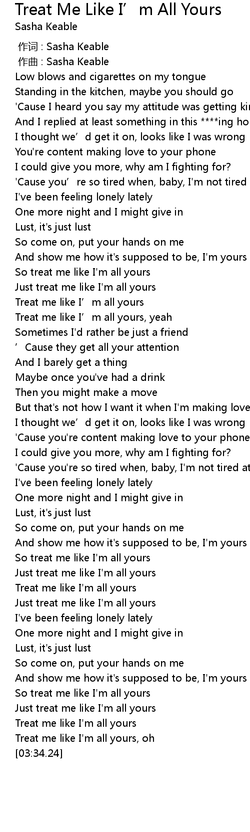 | [03:26.87] | Treat me like I'm all yours, oh |