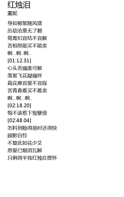 | [03:25.88] | 只剩得半残红烛在襟怀 |