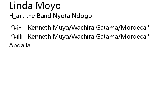 | [00:00.000] | 作曲 : Kenneth Muya/Wachira Gatama/Mordecai"Dex"Mwini/Mwanaisha Abdalla |
