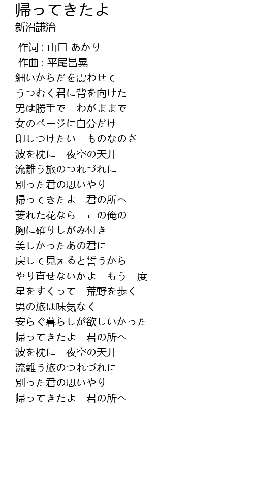 | [03:19.06] | 帰ってきたよ 君の所へ |