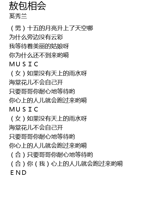 [03:30.64] (合)你(我)心上的人儿就会跑过来哟嗬